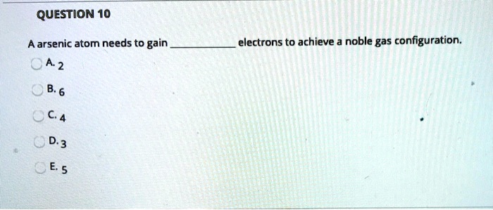Source: https://www.numerade.com/ask/question/question-10-a-arsenic-atom-needs-to-gain-a-2-electrons-to-achieve-noble-gas-configuration-b-6-c-4-d3-5-29352/